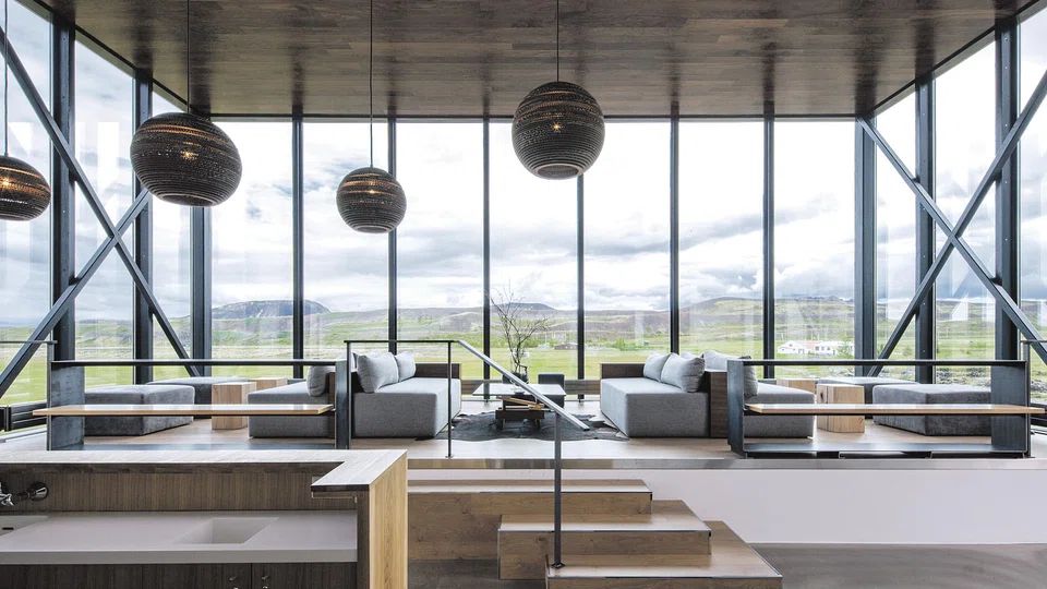 Before it became a hotel, the building was an inn for workers at the nearby Nesjavellir Geothermal Power Plant, the second largest in Iceland. American design studio Minarc was tasked with renovating the hotel, adding a new wing in the process.