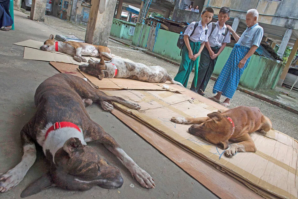 The mutt is one of more than 100,000 strays that roam the streets of Myanmar's commercial capital Yangon, sleeping in doorways, nosing through rubbish and barking their challenges to each other late into the night.