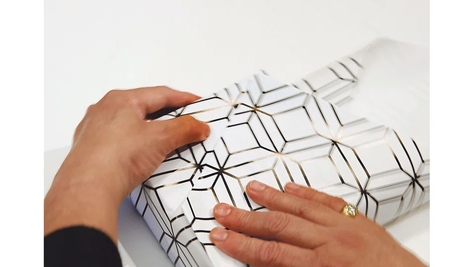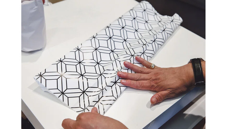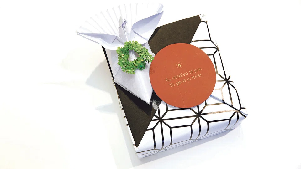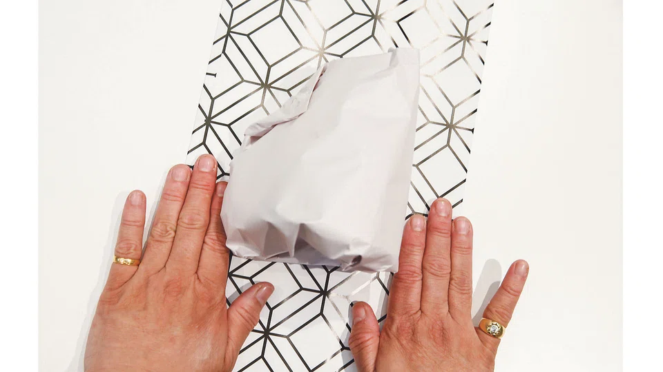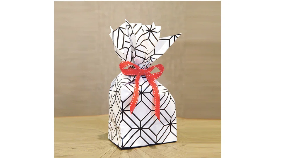This is the most versatile method of wrapping, as it can be used for both geometric and odd-shaped gifts and bottles. We are using a mug here as an example. The base of the paper bag should be wide enough to fit the gift.