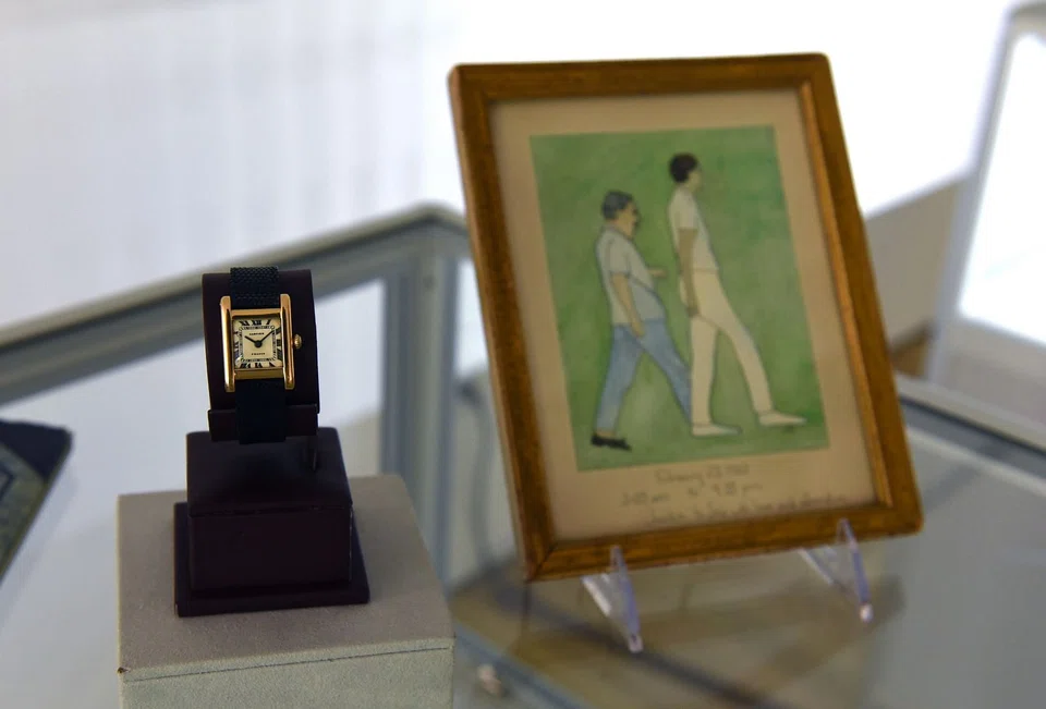 [NEW YORK] An engraved gold Cartier watch given to Jacqueline Kennedy and a reciprocal thank-you painting from the former first lady sold for US$379,500 at auction in New York on Wednesday, Christie's said.