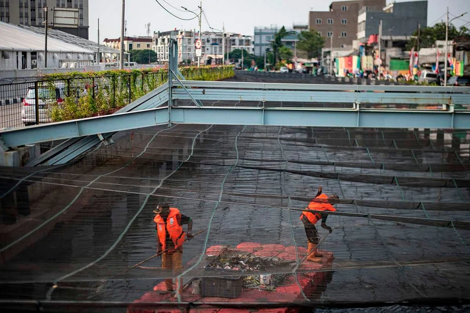Authorities hope the black netting will also minimise the foul smell emanating from the river, which is partly caused by water evaporating under the tropical sun.