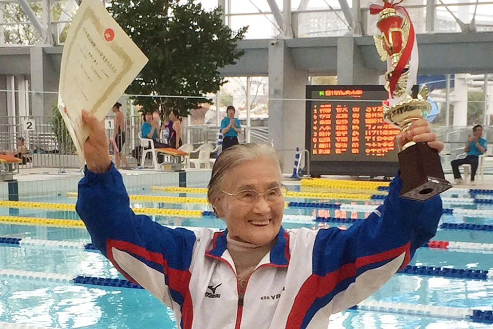 A 100-year-old Japanese woman has become the world's first centenarian to complete a 1,500-metre freestyle swim, 20 years after she took up the sport.