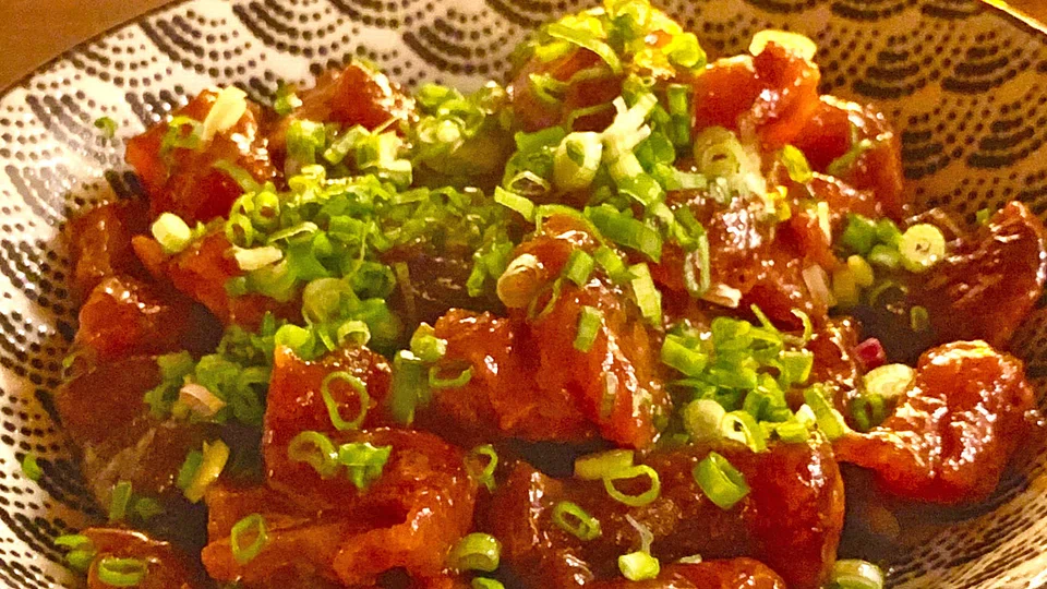 He follows up with three slices of pan-fried wagyu yakiniku, which is perfectly acceptable, arranged atop a pile of shaved onions seasoned with a very good onion dressing.