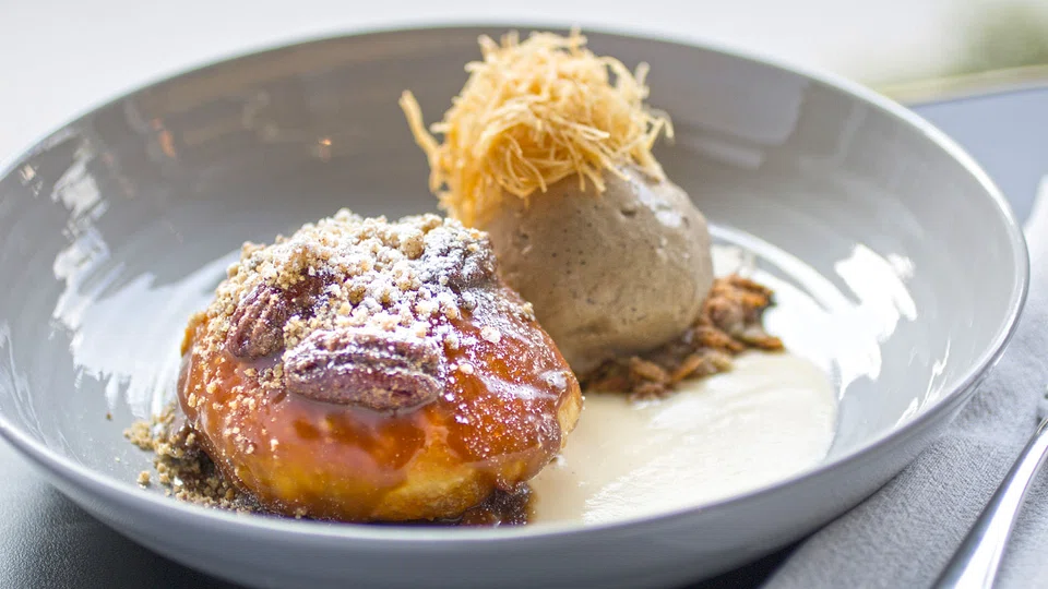 To end off, the brioche donut with coffee ice cream (S$16) is a dense, chewy fried brioche dough that miraculously takes on a realistic whiff and taste of Dunkin' Donuts, filled with upscale orange cream and a scoop of vanilla ice cream (at our request). It's a dessert that aims at your inner child, but the reality of middle-aged sugar-intolerance levels has you giving up halfway.