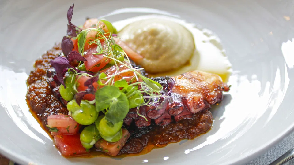 With relaxing jazz playing in the background, we chew on rubbery but not unpleasant charred octopus (S$24) in a distinctive Mediterranean presentation of spiced tomato jam and eggplant purée, topped with fava beans. There's a fight for attention as the octopus tries to hold its own against the more assertive tomato and eggplant, losing out in the end in this lopsided dish.