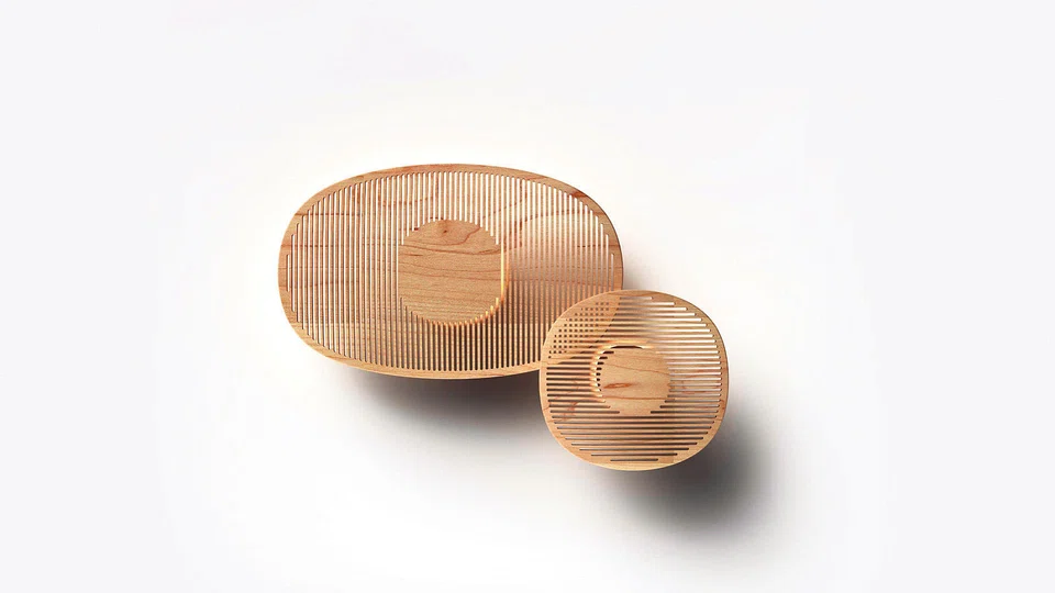 These two are part of 17 items designed by students from the Kyoto Design Lab, Kyoto Institute of Technology and Design Incubation Centre, National University of Singapore. Students from each country collected characteristic elements that represent their own culture. They were then exchanged, with each student tasked to come up with his or her own interpretations of the culture element they selected.