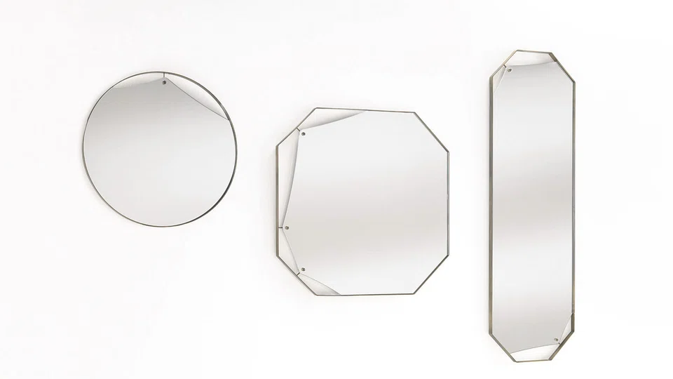 Designers Francesca Lanzavecchia and Hunn Wai have fun with wall mirrors in their collection, Pinch, for Italian brand Fiam.