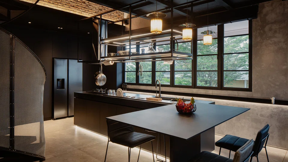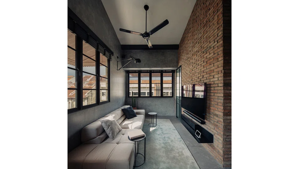 To create that New York City apartment feel, Mr Lam chose shades of grey and black for the industrial look, and also lined some walls with bricks. His choice of materials from the concrete kitchen countertop to the stainless steel sink in the common bathroom also add to the industrial aesthetic.