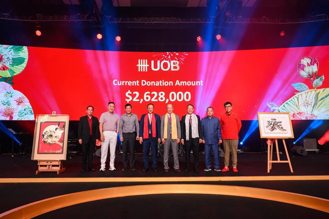 As part of the fundraising efforts, UOB auctioned two pieces of artwork. The winning bids were made by Low Kok Ann, CEO of Hafary, and Neo Kah Kiat, founder, chairman and CEO of Neo Group, who bid S$250,888 and S$238,000, respectively, at a fundraising gala dinner on Feb 6.