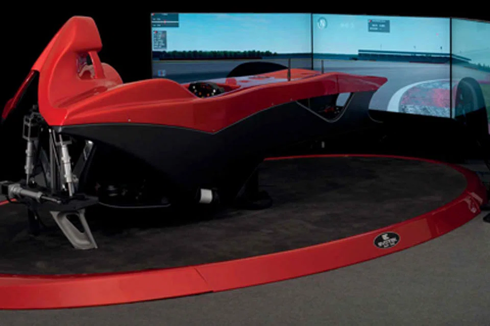 Touted as the closest thing to an F1 experience, the simulator is made of carbon fibre and aluminium alloys, and fronted by high-definition screens. The cockpit follows the proportions of a real race car, while the actuators have been specially developed.