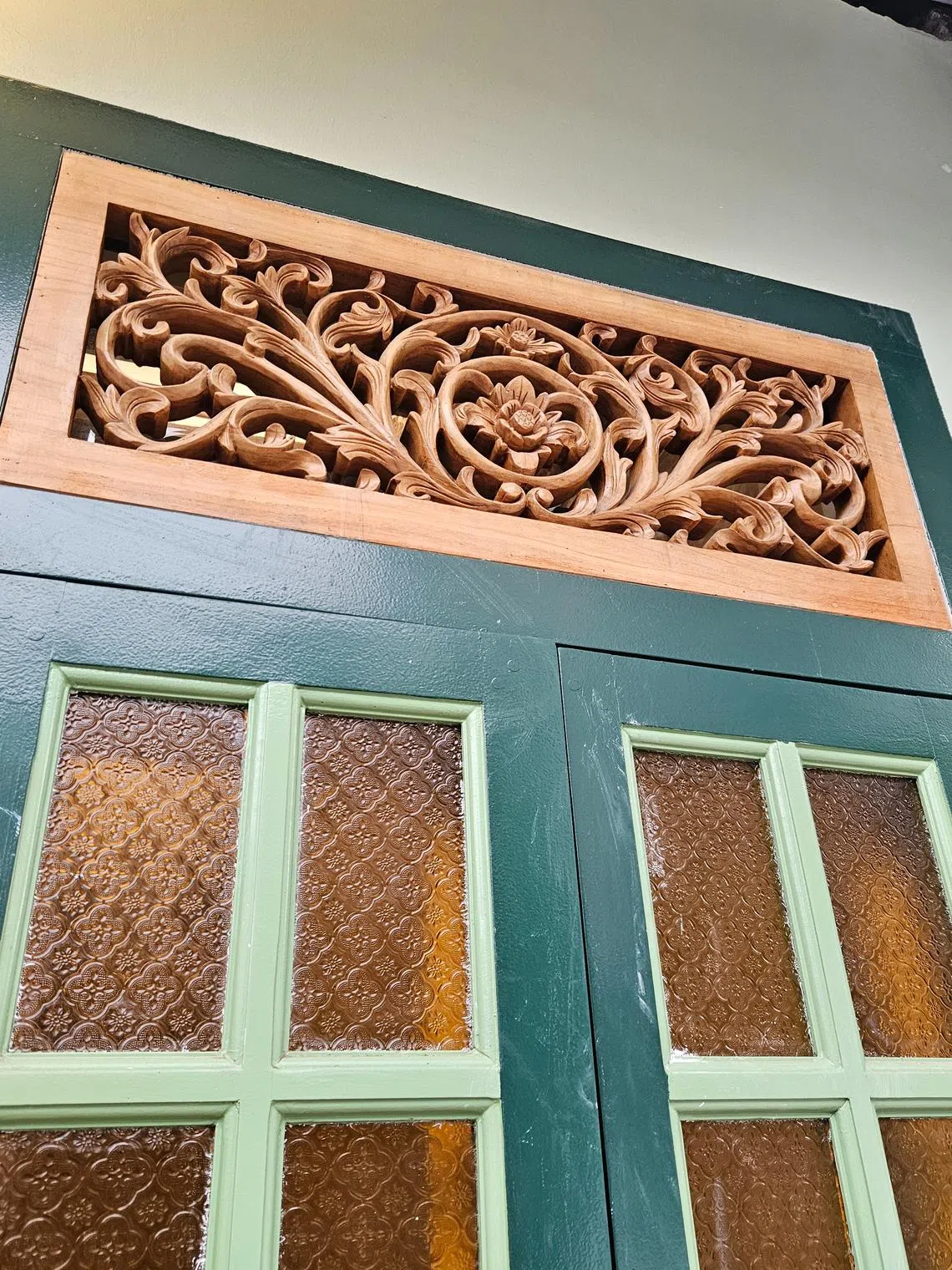 Timber fretwork panels were handcrafted in Indonesia to replicate those that used to sit above the doors and windows. During construction, red cement tiles were found under a thick layer of cement screed on the ground floor near the entrance. The patterned ones were painstakingly removed to avoid damage during construction before being carefully replaced later.