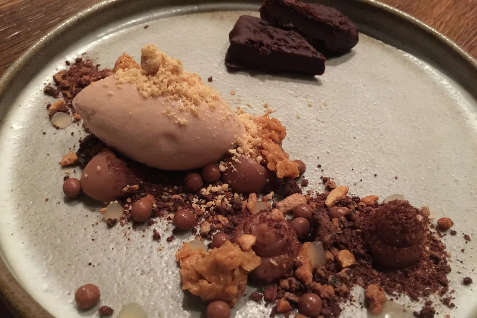 Thumbs up to the peanut tim tam dessert (S$16 from the dinner menu) where chewy peanut butter ganache and chocolate ice cream are just made for each other. The home-made tim tam chocolate fudge cookies add to the fun.