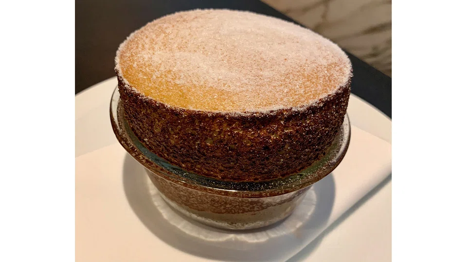 Dessert is a pistachio marzipan souffle (S$24), given an Italian connection with the addition of boozy grappa custard drizzled into its steaming hot, pillowy insides.