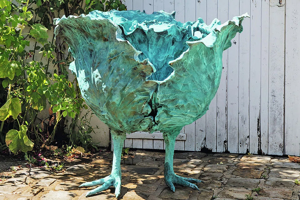 Claude Lalanne, by contrast, found more inspiration in art nouveau and plant forms, creating exquisite benches and chairs from exotically shaped, gilded bronze leaves.