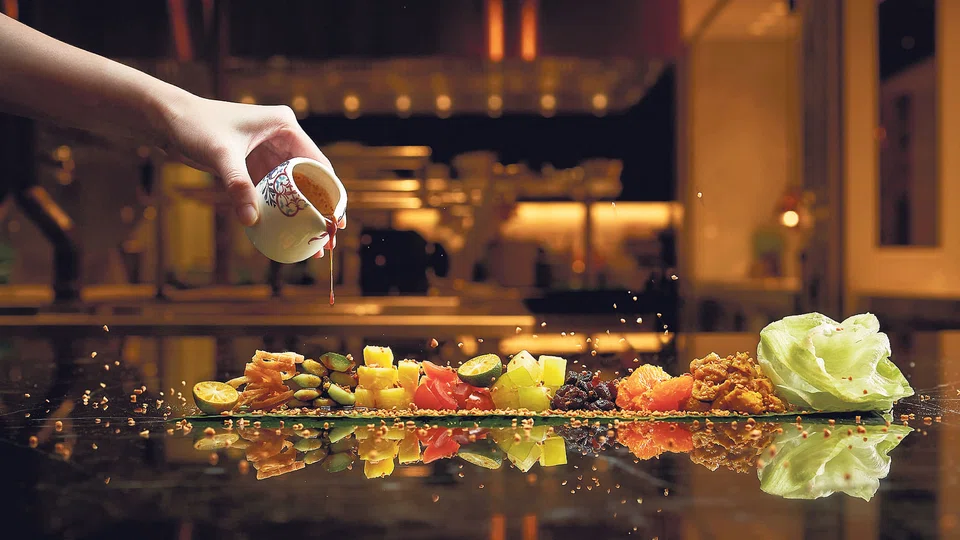 For classic taste buds, the restaurant offers a salmon yu sheng - a co-mingling of raw salmon, assorted pickled vegetables, kumquat, ginger, turnip, carrots, toasted white sesame, peanuts, and crackers, dressed with plum sauce and calamansi, at $168 (6 to 8 persons)