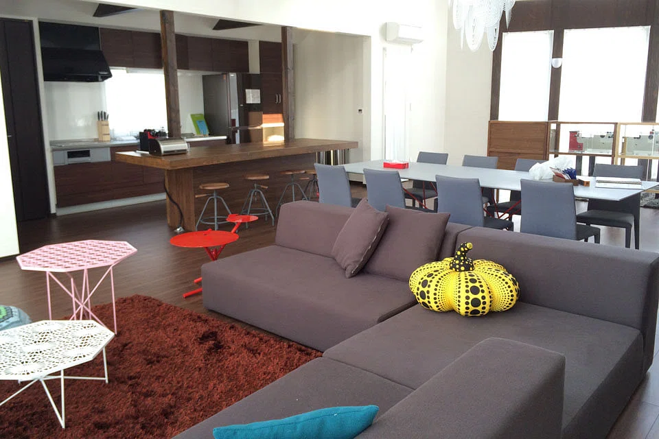 The architecture of the townhouse was inspired by Japan's heritage townhouses that were inhabited by craftsmen and wealthy merchants towards the end of the Edo period. The interiors were done by Singapore-based award-winning interior design firm, Design Intervention. The posh interiors are modern, but with Japanese touches.