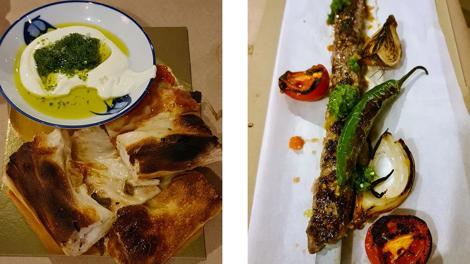 But, we have to say that the chef - hairy arms or not - is good with fire, doling out a commendable long spear of kebab (S$45) made from juicy rib-eye that retains its moisture despite being flattened or minced and wrapped around the dangerous metal blade. Served on a bed of creamy tahini and green chilli herb sauce mix with the olive oil and meat juices, it's a satisfying protein boost.