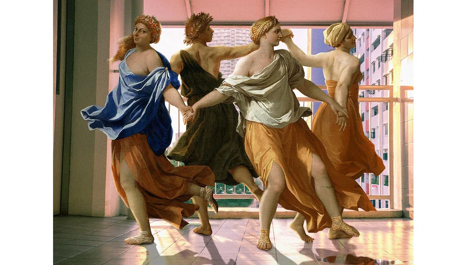 Most of them feature characters lifted from famous classical paintings and plonked into a Singapore scene. (Think Botticelli's Three Graces dancing in an MRT train and Vermeer's Milkmaid working in a local café.)