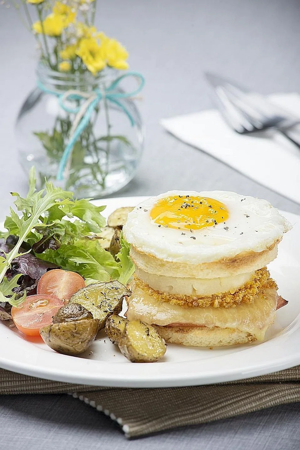 The food also bears hints of local flavours. Drawing inspiration from ondeh ondeh, the crumpets are sometimes paired with drizzles of homemade gula melaka syrup and a shower of coconut flakes. The Lady Hyde, a classic French Croque Madam sandwich with ham, cheese, and egg is also spruced up with pineapple and hae bee hiam - a creation that came from much experimentation with local ingredients such as lap cheong, otah and luncheon meat.