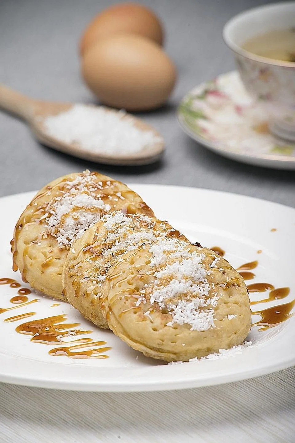 There's nary a scone in sight at this modern-day tea parlour, and neither will you find staples such as eggs benedict, pancakes or waffles on the menu. Instead, the place offers crumpets that Mr Chew describes as "a mix between an English muffin and a sponge cake". Guests can mix and match their stack of fluffy griddlecakes with sweet and savoury trimmings.