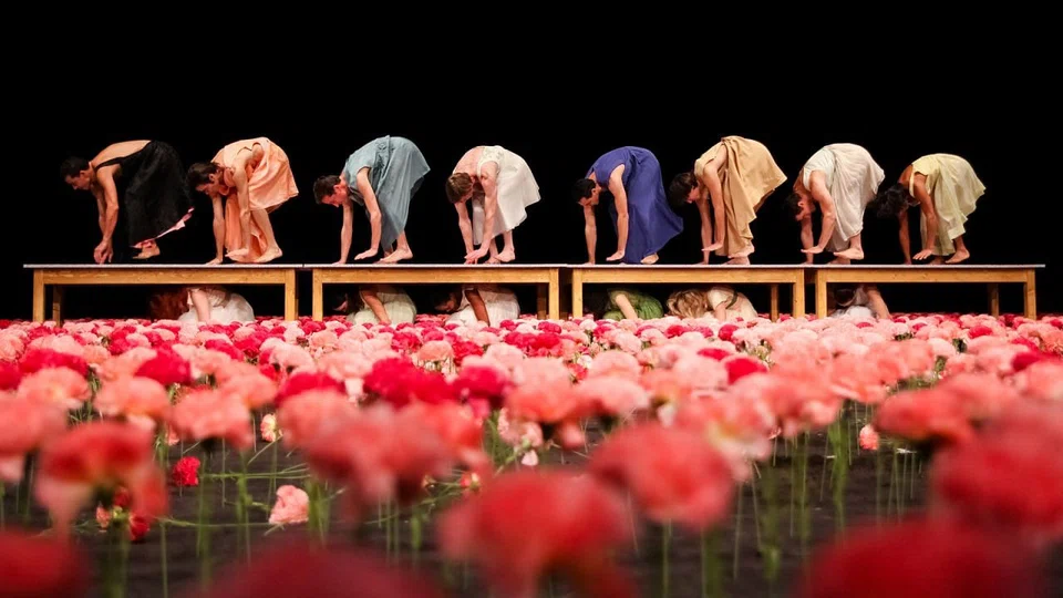 Nelken, a 1982 work that helped cement Bausch's reputation as an original, is strung by moments like these - moments so peculiar and poised they could easily tip into comedy or tragedy. What holds them together, despite their outward strangeness, is the always relatable human emotions at their core. Fear, joy, cruelty, sadness and humour are often rolled into one in the roughly two dozen discrete scenes, presented on a stage adorned with thousands of pink and red carnations.