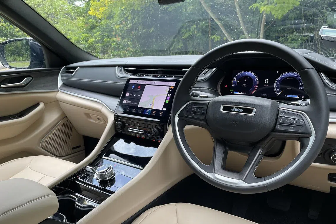 While you certainly get plenty of real estate and equipment for the money, the Jeep falls down somewhat in terms of poshness. The digital driver displays are pretty low-resolution and look like they came out of a much cheaper car, while the dashboard’s wood panelling looks, feels and sounds like plastic.