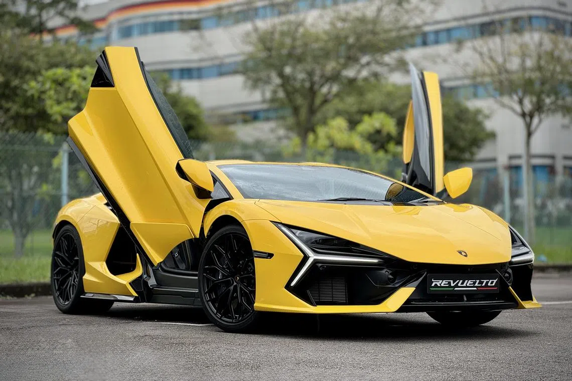 Lamborghini Revuelto Engine 6.5-litre V12 Engine Power 825 hp at 9,250 rpm Engine Torque 725 Nm at 6,750 rpm Motor power 300 hp (front), 150 hp (rear) System power 1,015 horsepower Battery 3.8kWh lithium-ion Electric range 12km (WLTP) Gearbox 8-speed dual-clutch automatic 0-100 kmh 2.5 seconds Top Speed Over 350 kmh Fuel Efficiency 11.9 L/100 km (WLTP) Agent Eurosports Auto Price S$2,680,000 without COE Available Now