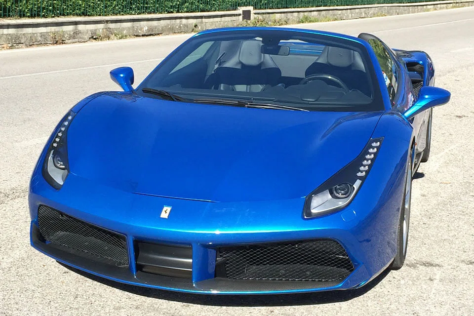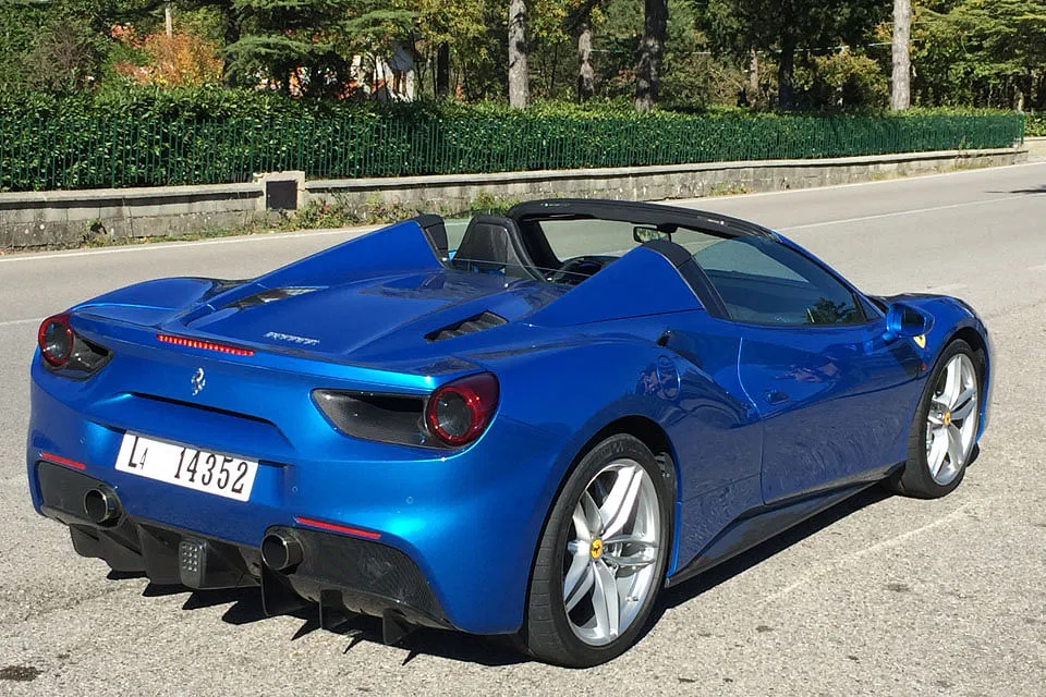 At 1,420 kg, the roadster version of the 488 GTB coupe is just 50 kg heavier - or slightly more than that supermodel girlfriend in the front seat - with a retractable hard top that weighs 25 kg less than a similar soft top.