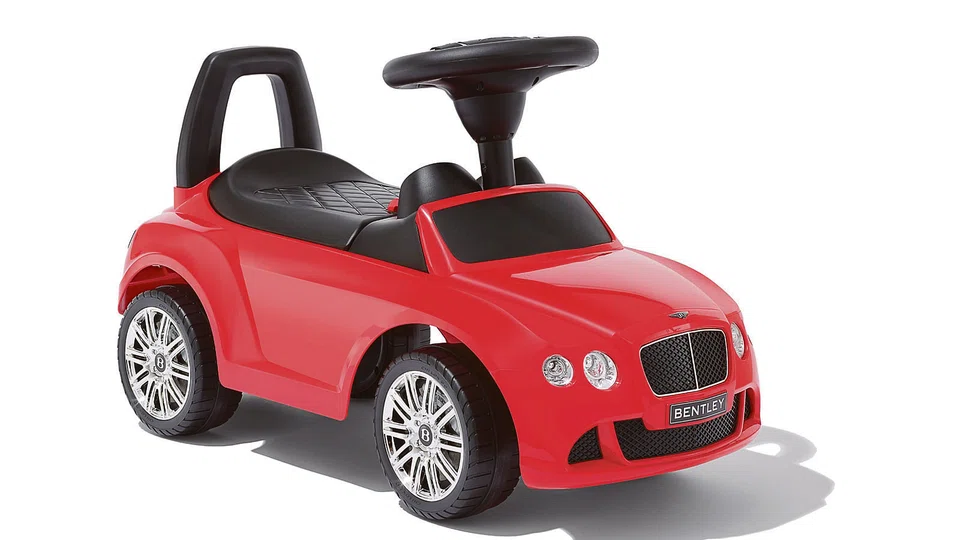 Baby Bentley 2. Can't wait for your toddler to get into the ultra-luxury market? Then give him a headstart with the Bentley Ride-On Car in Dragon Red. Inspired by the Continental GT, it comes with a functioning steering wheel, horn and selection of music. Price: S$250 from Bentley S'pore