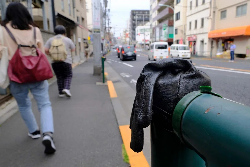 Closer inspection revealed it to be a mesh fabric ladies' glove, leading Mr Ishii to extrapolate it was worn by a woman who removed it at the crossing to check her smartphone while she waited and didn't notice she had dropped it.
