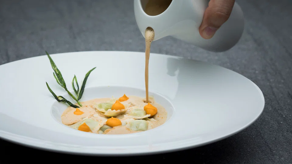 We're thankful to dive into an old favourite, Lobster Bisque (S$28) - the signature dish of executive chef Jean-Charles Dubois, a veteran of the local hotel scene who's also helmed his share of cosy French bistros. While the cool, modern surroundings doesn't quite summon the kind of rustic ambience that the bisque lends itself well to, it's still a pleasure to sip mouthfuls of hot, creamy, lobster-enriched broth with the bonus of tiny little cheese ravioli within.
