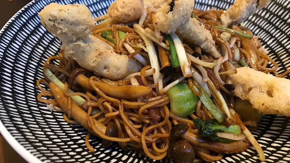 From the Chinese side, the wok-fried egg noodles with dark soya sauce and bean sprouts (S$18) has a decent whiff of wok hei and a hint of sweetness from kicap manis - but is plain fried noodles nonetheless.