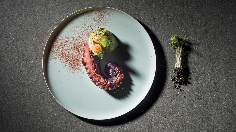 We aren't lucky with our first course either - a door wedge of an octopus leg (S$26) that leans more in taste to a rubber dinghy than the Galician sea it purports to come from. The paprika-dusted grilled specimen sits on avocado purée, accompanied by creme fraiche topped with pearls of finger lime, none of which help to lift the dish.