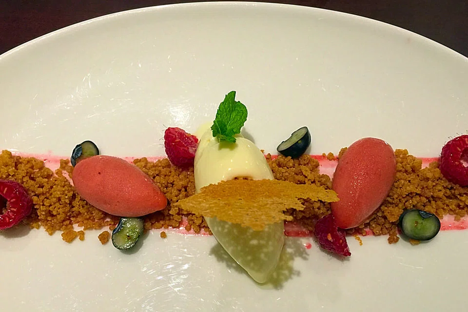 We're generally wary of Indian desserts, so we really don't want the parmesan cheese kulfi with raspberry sorbet ($18) that our server is so keen to recommend. But he's been so unfailingly polite and well-informed about what he's serving that we give in. He really knows what he's talking about because we've never had a mild-tasting sweet cheese ice cream go so well with sweet-sour raspberry sorbet on a bed of crunchy cheese cookie crumble. The pairing of salty, sweet, and cheesy makes us want to proclaim Saha as the new frontier of Indian cuisine - but wait, we did that already.