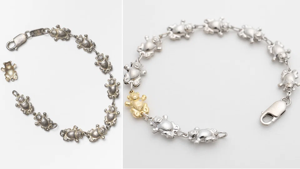 YANN Lee doesn't remember which of her parents gave her this teddy bear bracelet but she remembers bugging her mum to let her wear it even when the links wore down and the bracelet broke. That was 20 years ago. Contemporary fine jewellery label State Property casted a new teddy bear in gold, using a rubber mould. The gold stands out from the other silver bears. The addition of a diamond in the heart of the gold bear makes it an even more precious piece of jewellery.