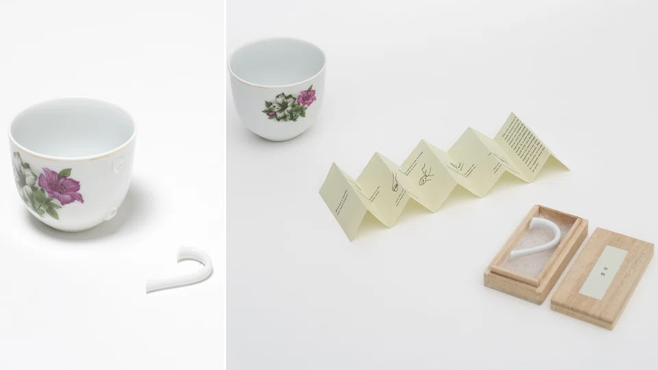 TAN Geok Khim owns a tea cup with a broken handle that she can't bear to throw away. It was handed down from her parents and despite the damage, she still treasures it dearly. But rather than glue the handle back, Atelier HOKO decided that brokenness can be celebrated and a damaged cup should be seen in a different light. The studio removed the rough bits of the cup, designed a box to store the handle, and came up with a booklet to show how the cup can be used without its handle.