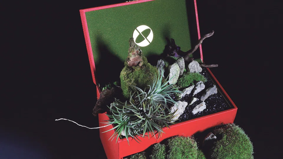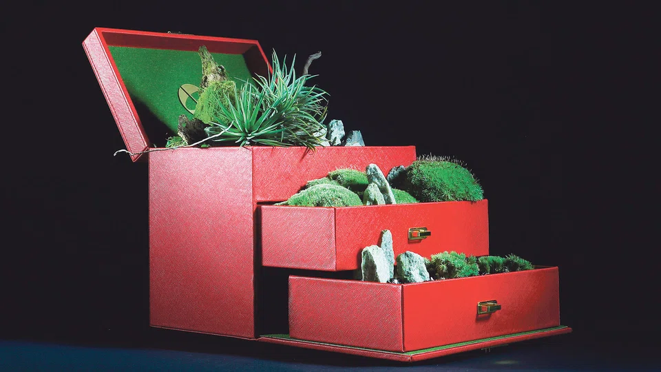 Inspired by this story, the team at DP Architects and DP Green have turned the mooncake box from Fairmont Singapore into a terraced planter box, using a variety of moss and airplants, which are suited for growing indoors.