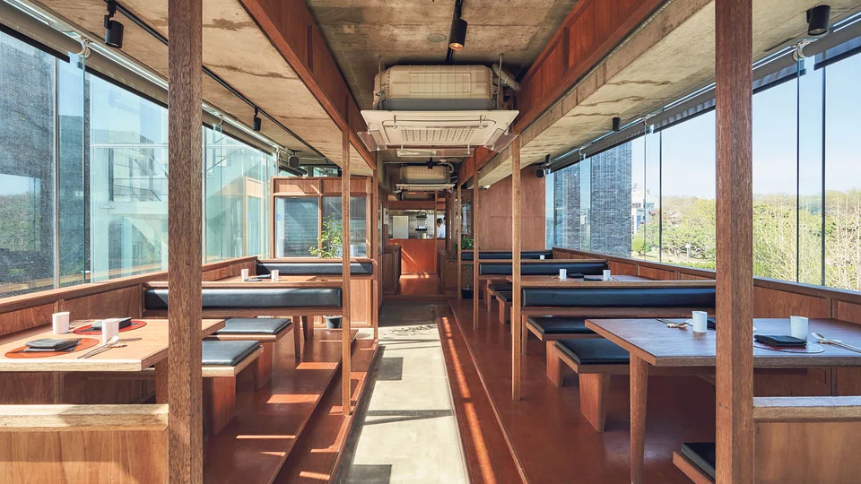 The building is separated into different floors and concepts including a casual cafe/butchery where you can buy meat in clean, fancy surroundings and have a beef katsu sandwich or Vietnamese-style pho. There's a regular Korean barbecue joint on one level, a Korean dining restaurant and the piece de resistance - the omakase barbecue bar in the basement helmed by Mr Jung himself.