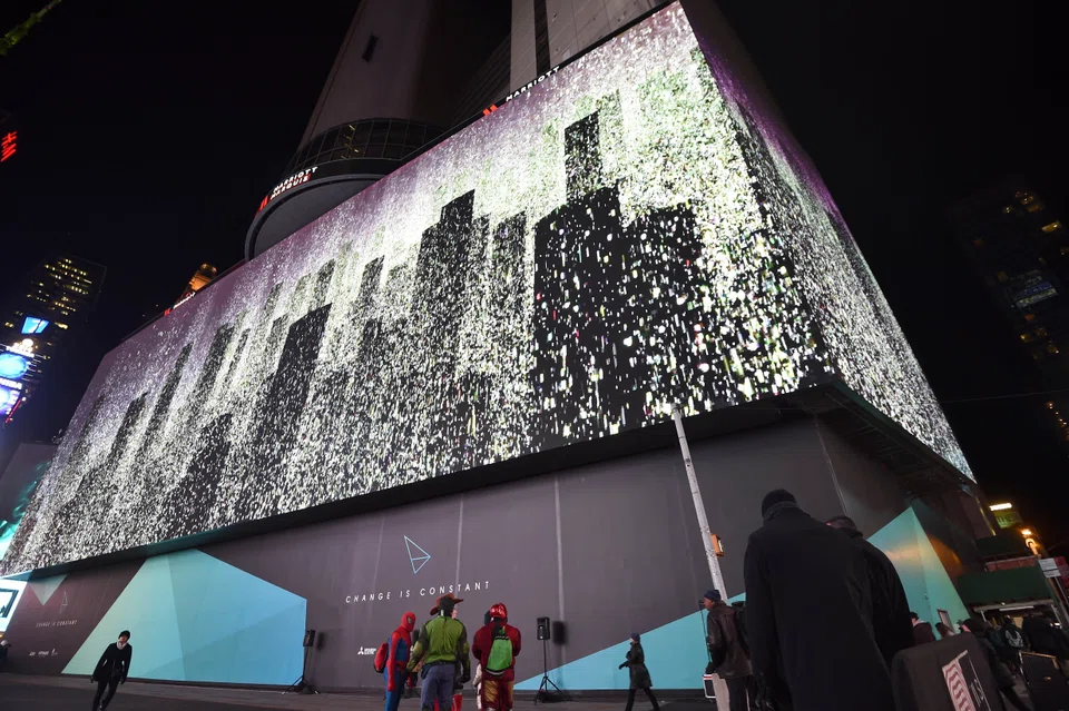 The 24-million-pixel display - measuring more than 25,000 square feet (2,320 square meters) - will feature digital art by Universal Everything studio until Google takes over with ads on Monday until the new year.
