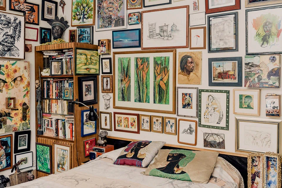 The paintings, sculptures and drawings are not all necessarily by well-known artists, and Mr McCoy likes it that way. In fact, he refused to let The New York Times photograph some ceramics by the biggest name on hand, the Chicago-based Theaster Gates. "I don't like putting one artist over the others," Mr McCoy said. "I have a problem with celebrity emphasis." He spoke glowingly of several paintings by George Crump, a sculpture by Preston Jackson and a print by Larry Walker (the father of artist Kara Walker), but, given enough time, he would find similar praise for everything in the place. Intense, bright colours tie it all together.