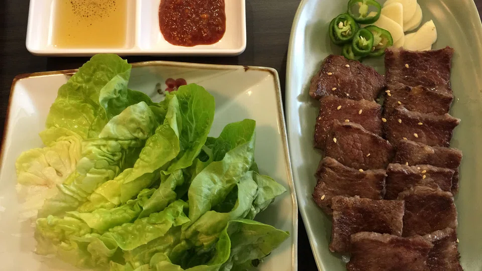 We enjoy the Japchae (S$18) - a smallish portion of glass noodles that is slippery, peppery and sweet, with crunch and texture from mushrooms, vegetable stems and black fungus. Eaten with kimchi - a perfect balance of savoury, sweet and tart - it's a flavour bomb.