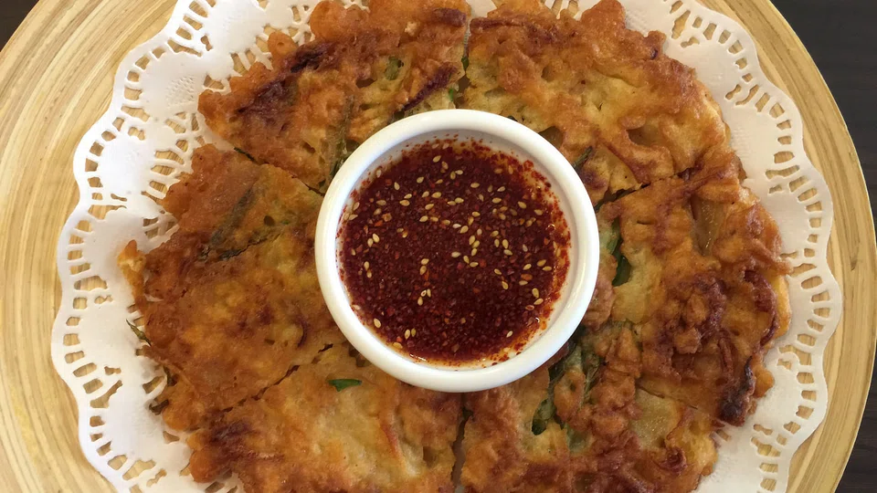 The Hameul Pajeon (S$22) is a crunchy, crusted, doughy pancake studded with squid and shrimp that is a little stodgy for us, although the crunchy bits and the tender seafood chunks are worth nibbling on. Just dip it sparingly into the overly salty chilli-vinegar dip it comes with.