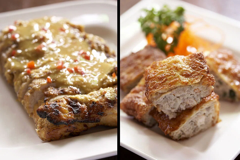 On his end, chef Chia adapts traditional recipes so they are not too overwhelming. "I retain the essence of the Peranakan flavour, but make tweaks so it's a healthier choice and not too heavy. Miso for instance can be used over taucheo (fermented soya bean paste)," says chef Chia. Dashi is also to replace stock bases in dishes such as Nonya laksa with prawns and oysters (S$24) or pong tahu (beancurd meatball soup, S$10), resulting in lighter and cleaner flavours while keeping the fragrance. Meats in the tau yew bak (braised pork belly in a bun; S$10 for two) or the ayam goreng kunyit halia (fried chicken wings in turmeric and ginger; S$10 for five) are also marinated with sake and shoyu.