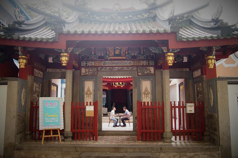 CHONG Wen Ge cafe is a doorway to the past. The first thing that greets you is a three-story pagoda, right smack in the centre of a stone courtyard. Look to the left, and you'll find the cafe's indoor seating area, complete with old-school wooden furniture on a Peranakan-tiled floor. It's all part of the Thiam Hock Keng temple complex - one of the oldest Hokkien temples in Singapore which is also considered a national monument.