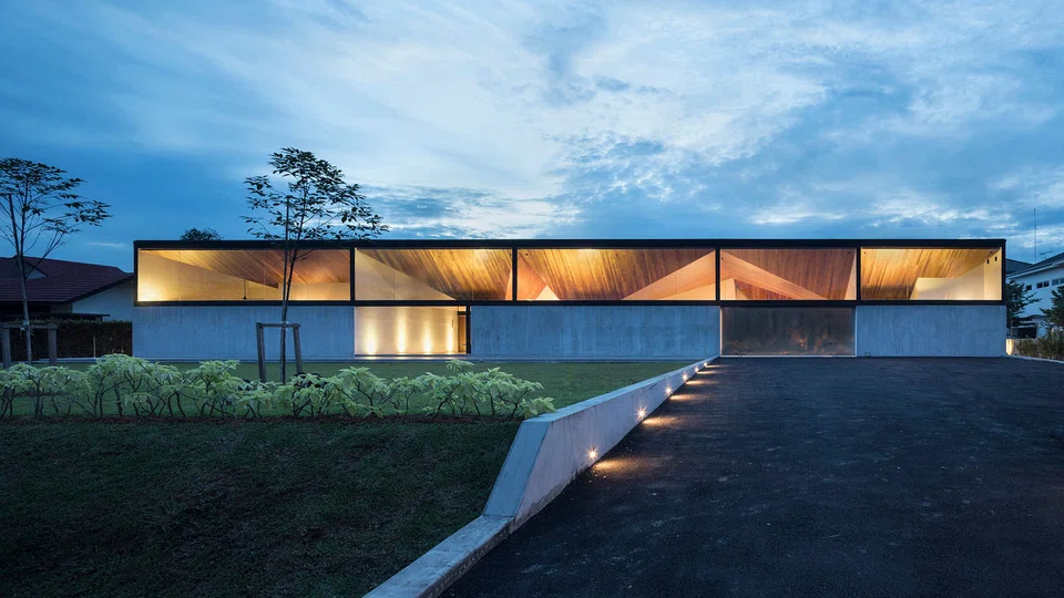 The home's unusual and eye-catching ceiling is clearly visible at night via a glass strip on the facade. PHOTO: FABIAN ONG