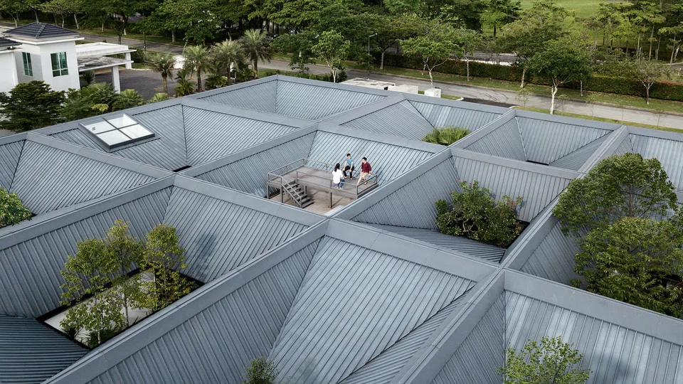The home's grid roof as seen from above. There is access to the rooftop via the movie room. PHOTO: FABIAN ONG