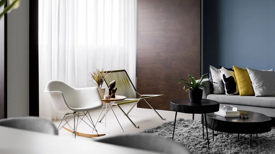 Sharp-eyed visitors will notice that the loose furniture in the apartment all have elegantly thin legs. They not only appear to float, but Mr Toh says that it is a design hack. "Being able to see the floor even when you have lots of furniture instantly makes a space feel bigger."