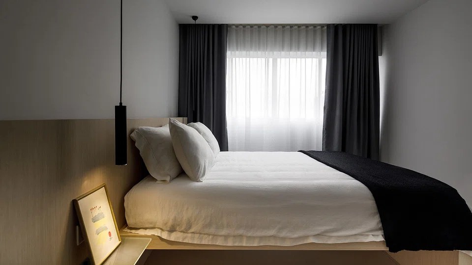 Like the rest of the home, his bedroom exudes calmness. Mr Toh keeps things simple, using a plywood headboard and a glass panel mounted horizontally as a bedside shelf.