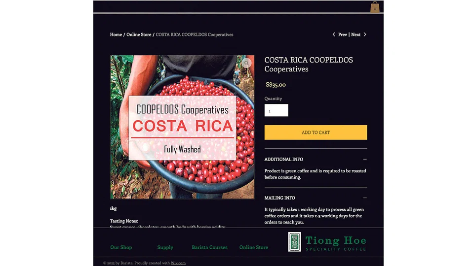 Besides selling coffee, Tiong Hoe also offers coffee appreciation, latte art and barista courses.