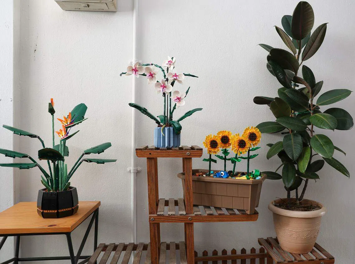 Those pots of “flowers” outside his home? They are made of Lego bricks too.
